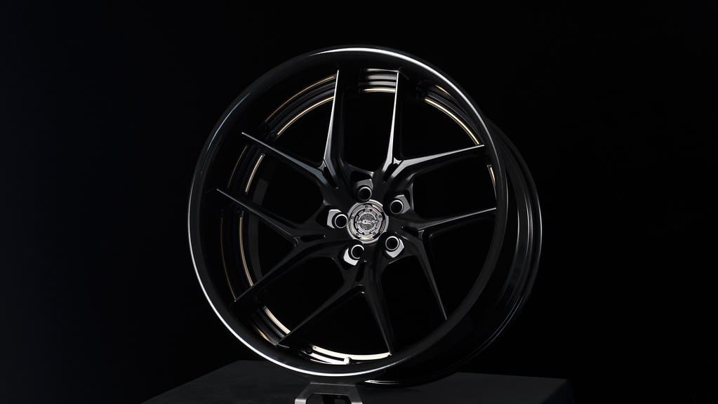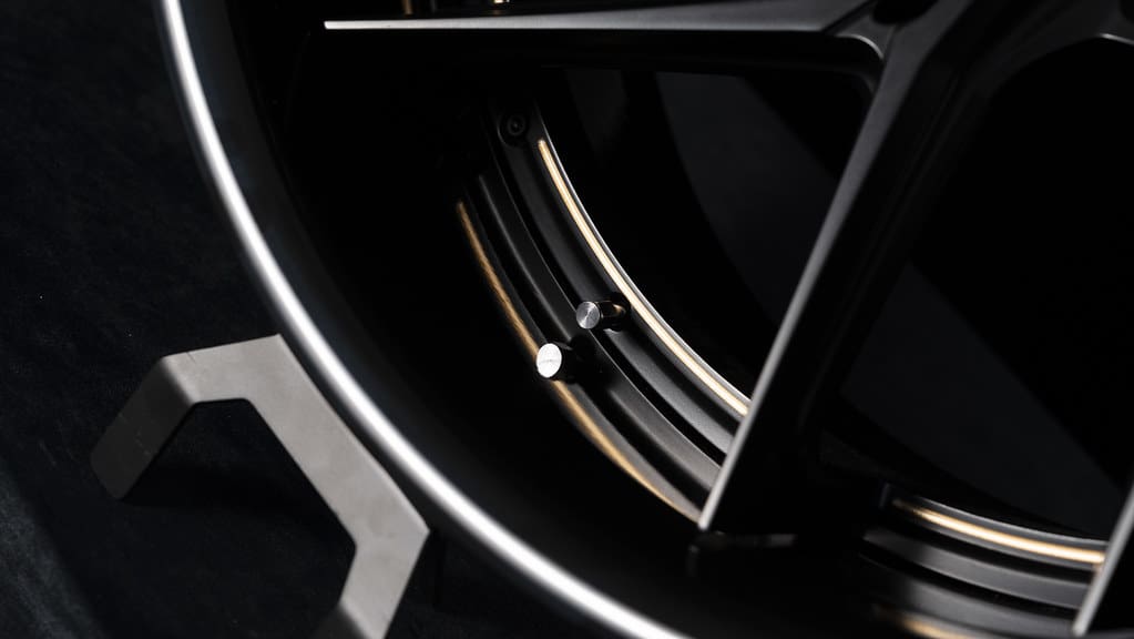 Competition Center Caps: Satin Black Bezel, Gloss 24k Center Cap, Forged Carbon Insert